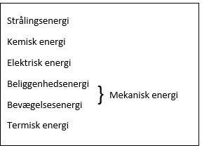 Forbrænding af olie, kul, gas frigiver også kemisk energi.