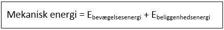 Fordi bevægelsesenergi og beliggenhedsenergi er så tæt forbundet har man et udtryk for den samlede energi: