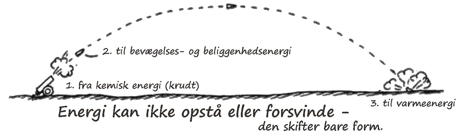 Når en genstand har beliggenhedsenergi og påbegynder et fald ned mod nulpunktet, så bliver beliggenhedsenergien omdannet til bevægelsesenergi.