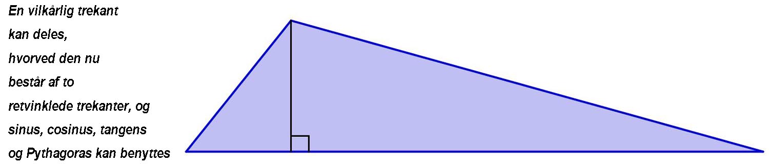 Pythagoras gælder kun i retvinklede trekanter og bruges, når man skal beregne en sidelængde.
